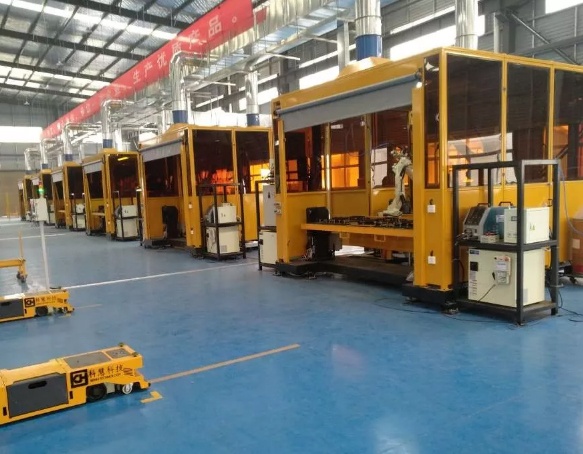 由科慧科技打造的該條畜牧設備柔性自動化生產線,運用24臺工業焊接機器人、12套工作站、2臺全自動激光切割機、2臺全自動沖弧口機、3臺自動切管機、4套智能AGV小車物流搬運系統、5臺自動彎管機、...